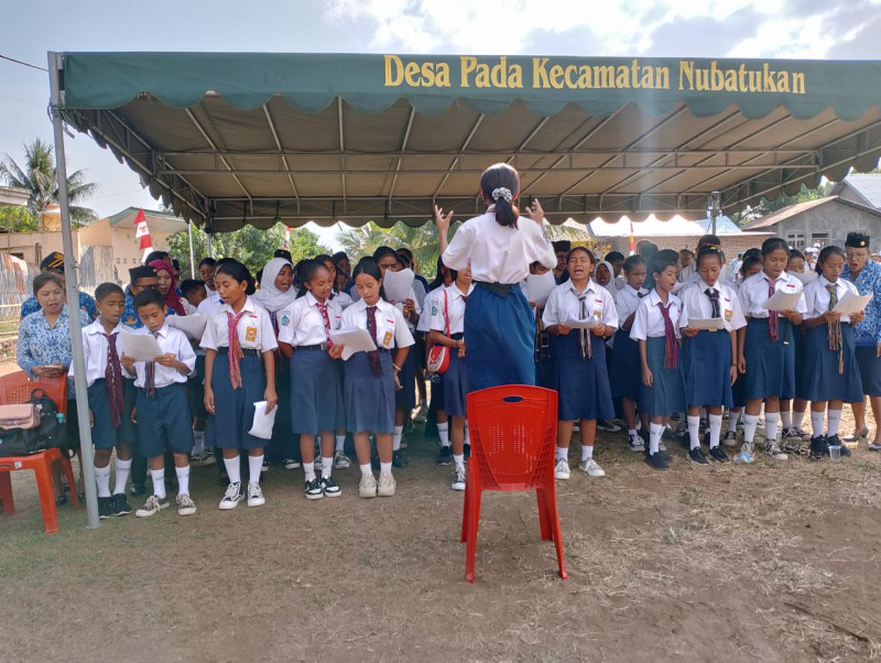 PADUAN SUARA DAN PASKIBRA SMPN 2 NUBATUKAN LENGKAPI UPACARA PERINGATAN HUT RI KE 79 TINGKAT DESA PADA